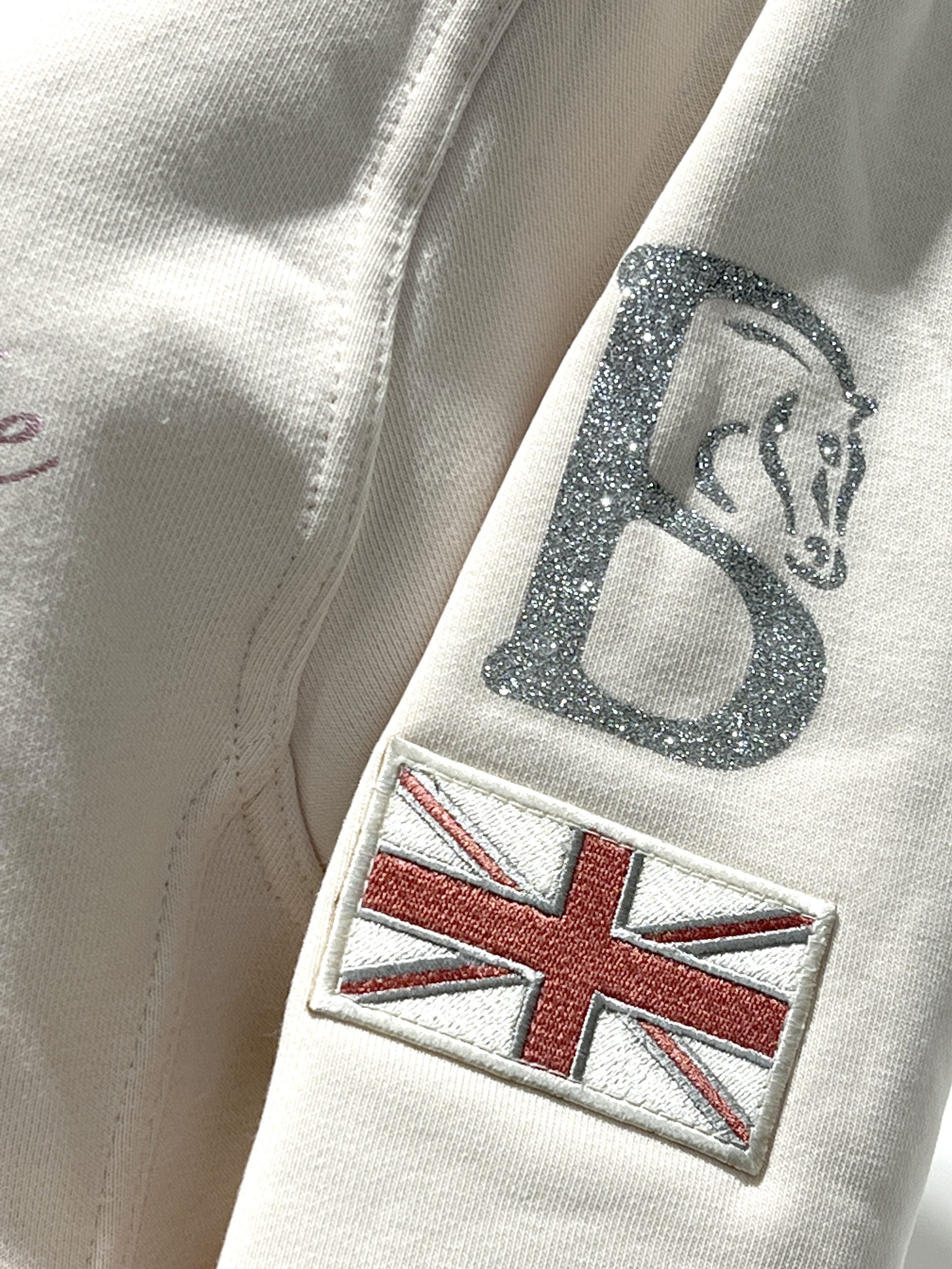 Bloomfields ‘B’ logo on opposite sleeve and added extra of union jack below