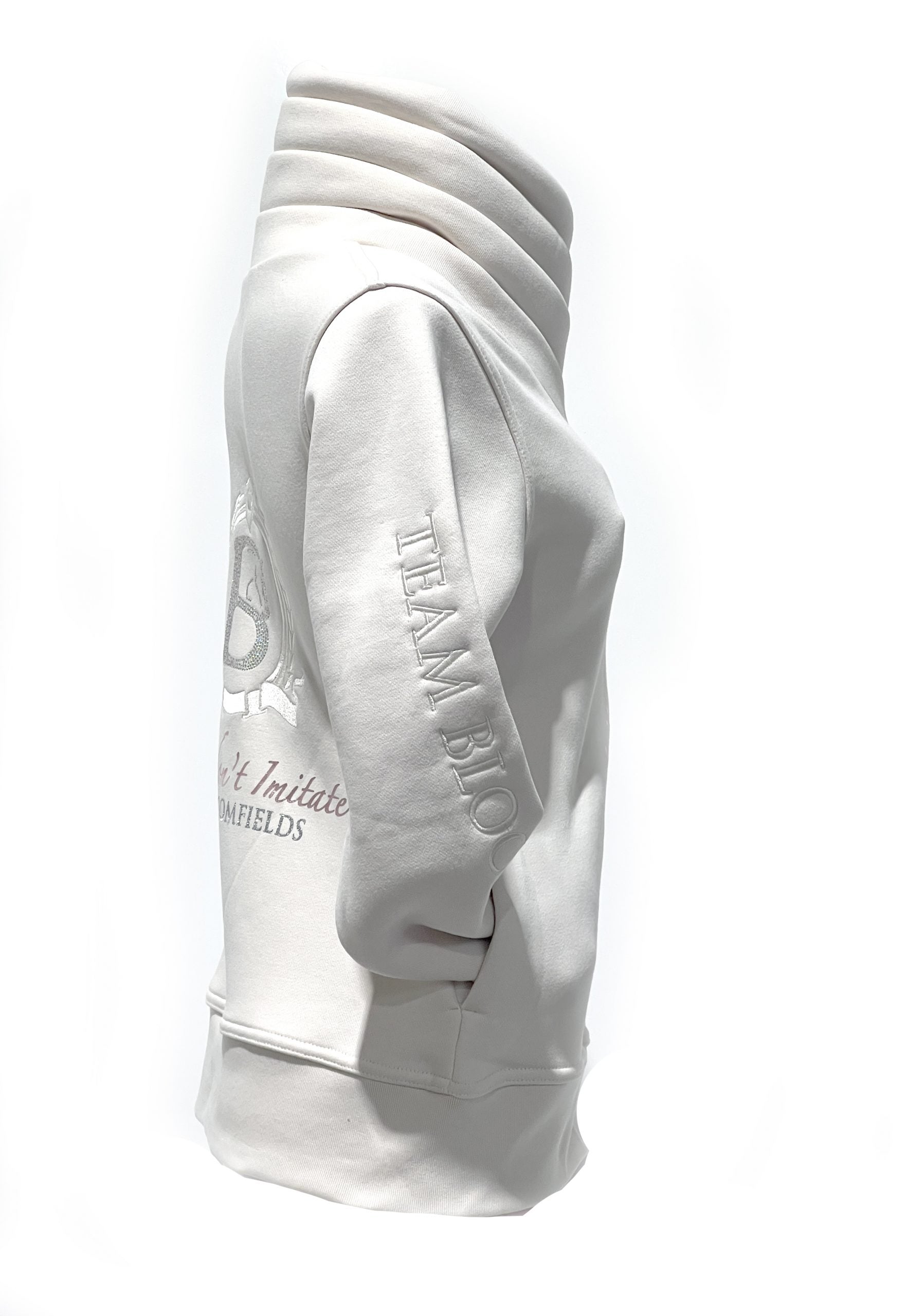 Finished in vanilla with full zip and exquisite high neck unique design.