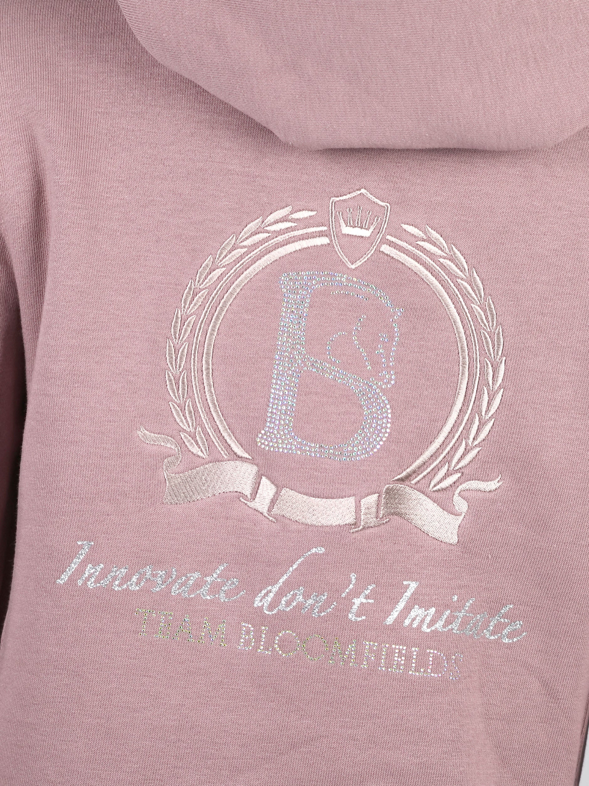 Across the chest, Innovate don’t Imitate branding sparkles in pearl rhinestones, complemented by Team Bloomfields and a rhinestone B motif on the reverse.