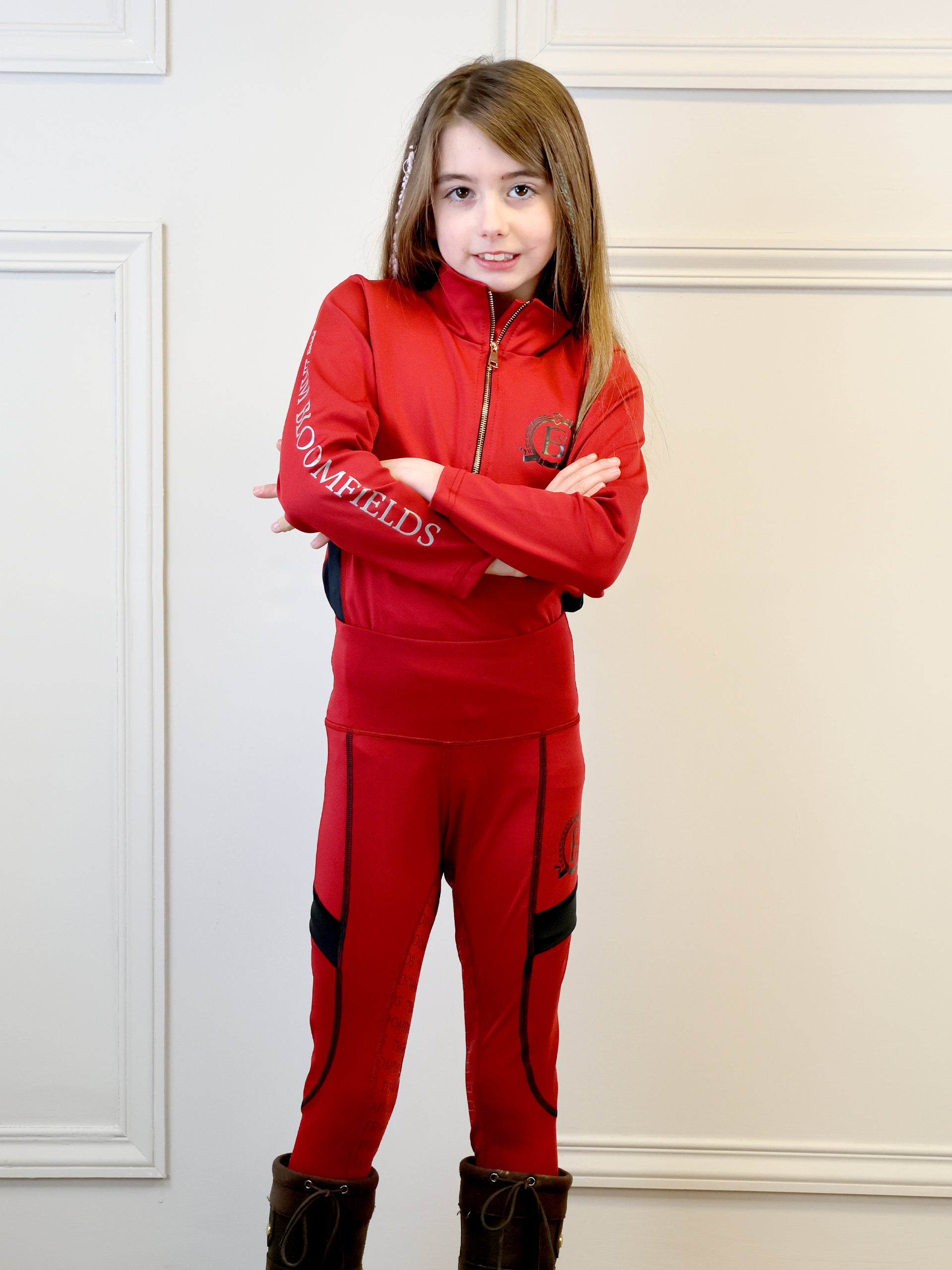 Beautifully fitted burgundy & black young rider Base Layer