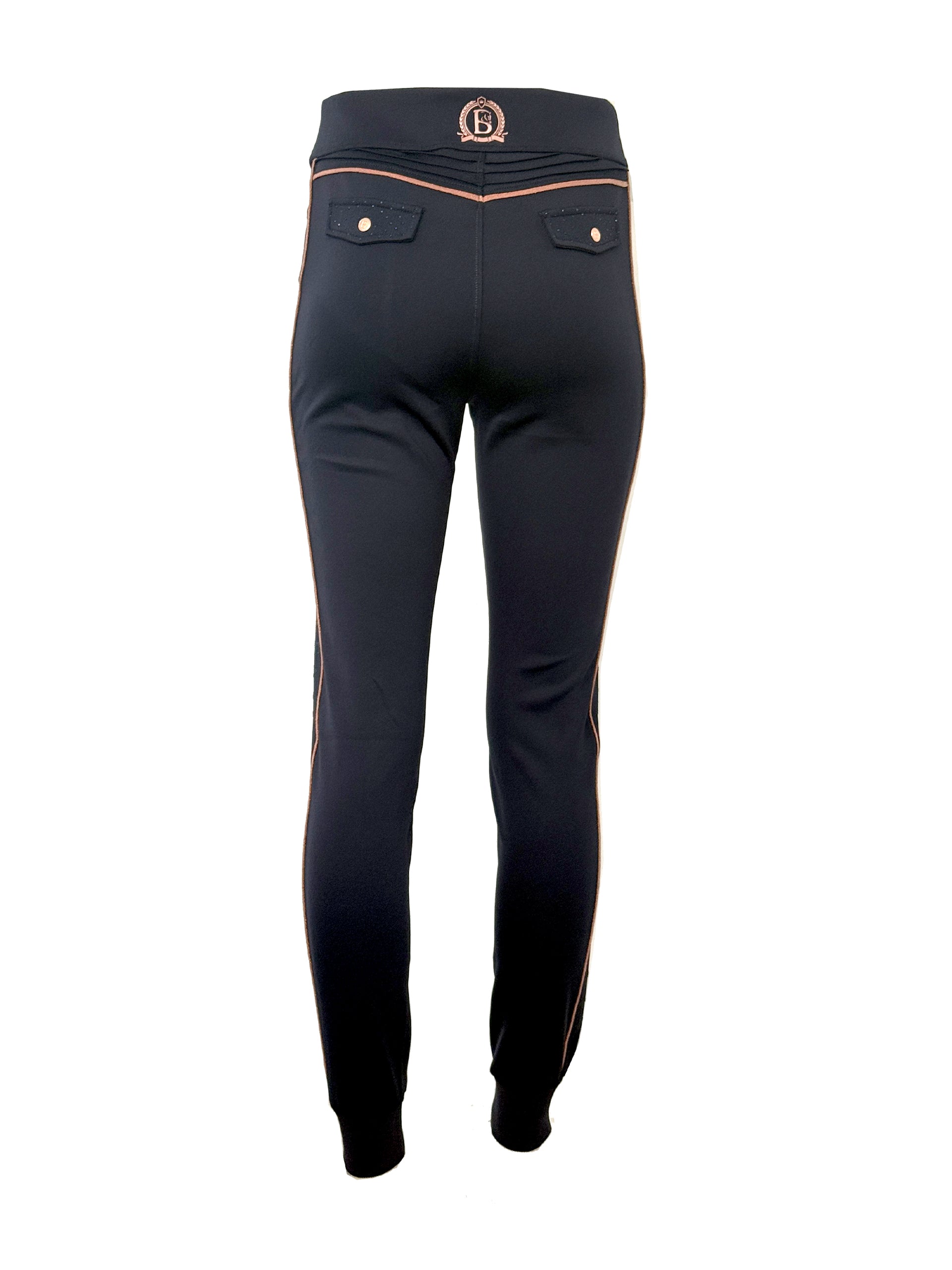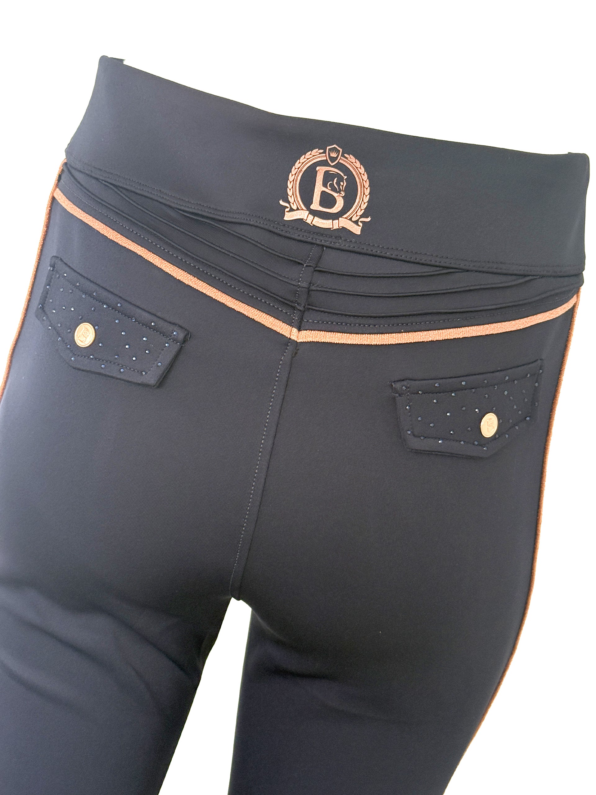 Team Bloomfields logo down the legs in blue rhinestone's.