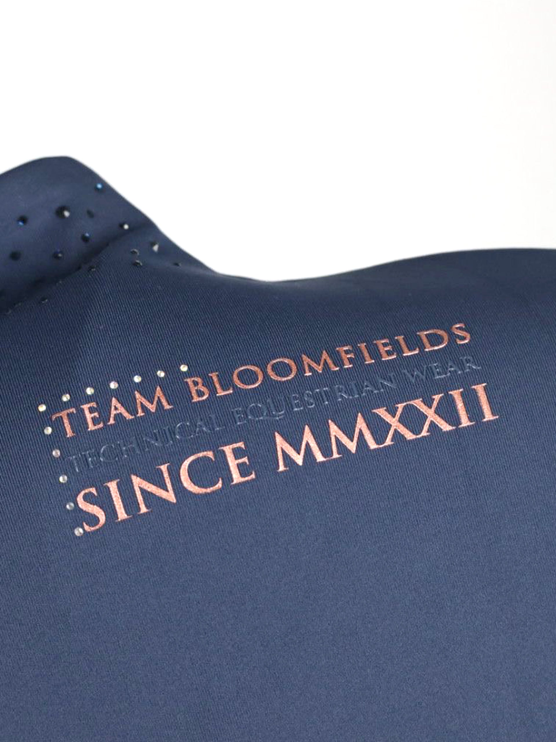 A beautifully tailored and elegant top featuring a statement diagonal zip closure, designed to flatter every shape. Finished in timeless navy with rose-gold accents and a full-length zip for a sleek, modern finish.