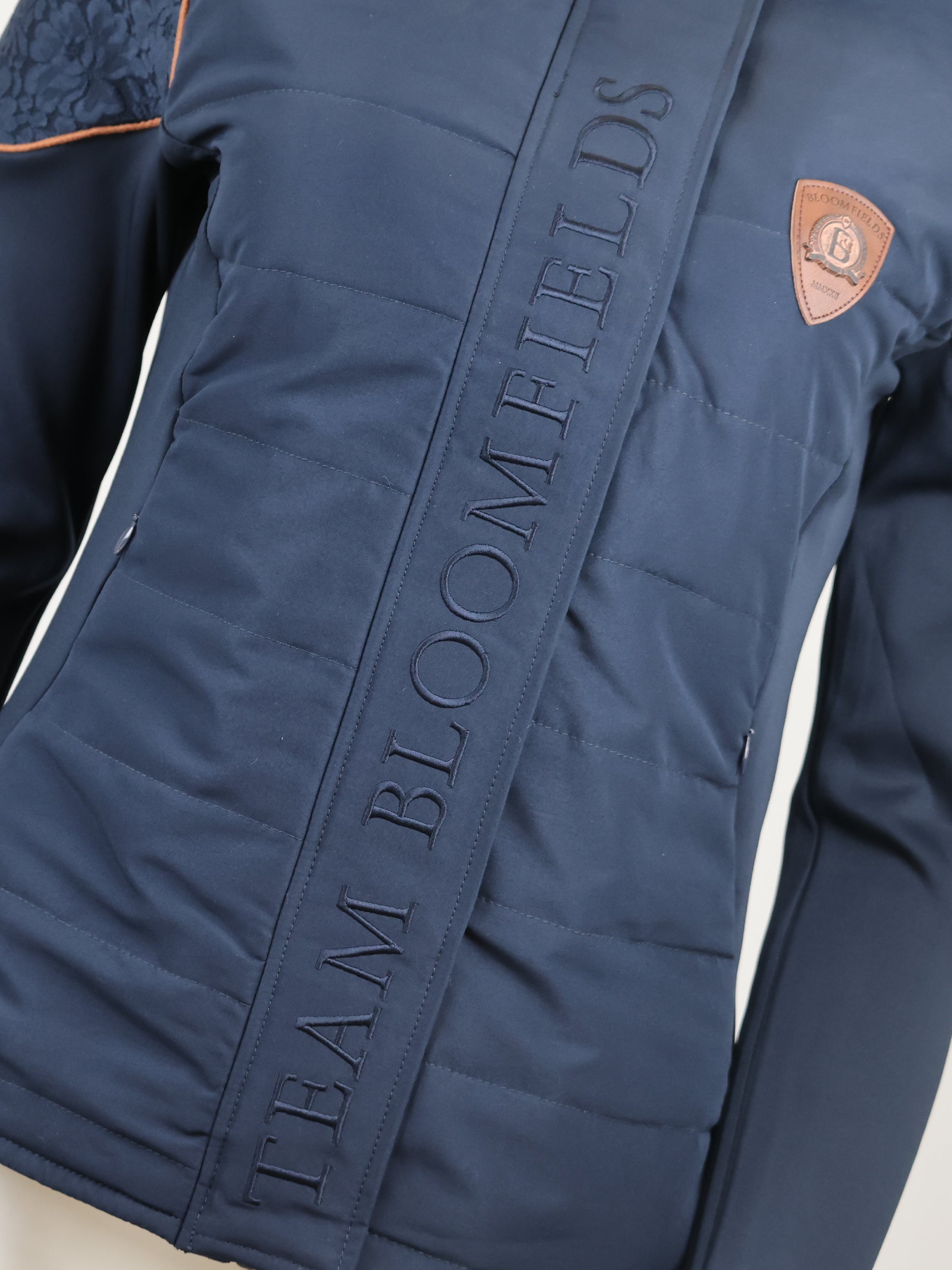 Finished with a premium leather badge showcasing our distressed bronze logo, and signature Team Bloomfields embroidery across the zip cover panel, this jacket is a true standout — sophisticated, functional, and beautifully unique.