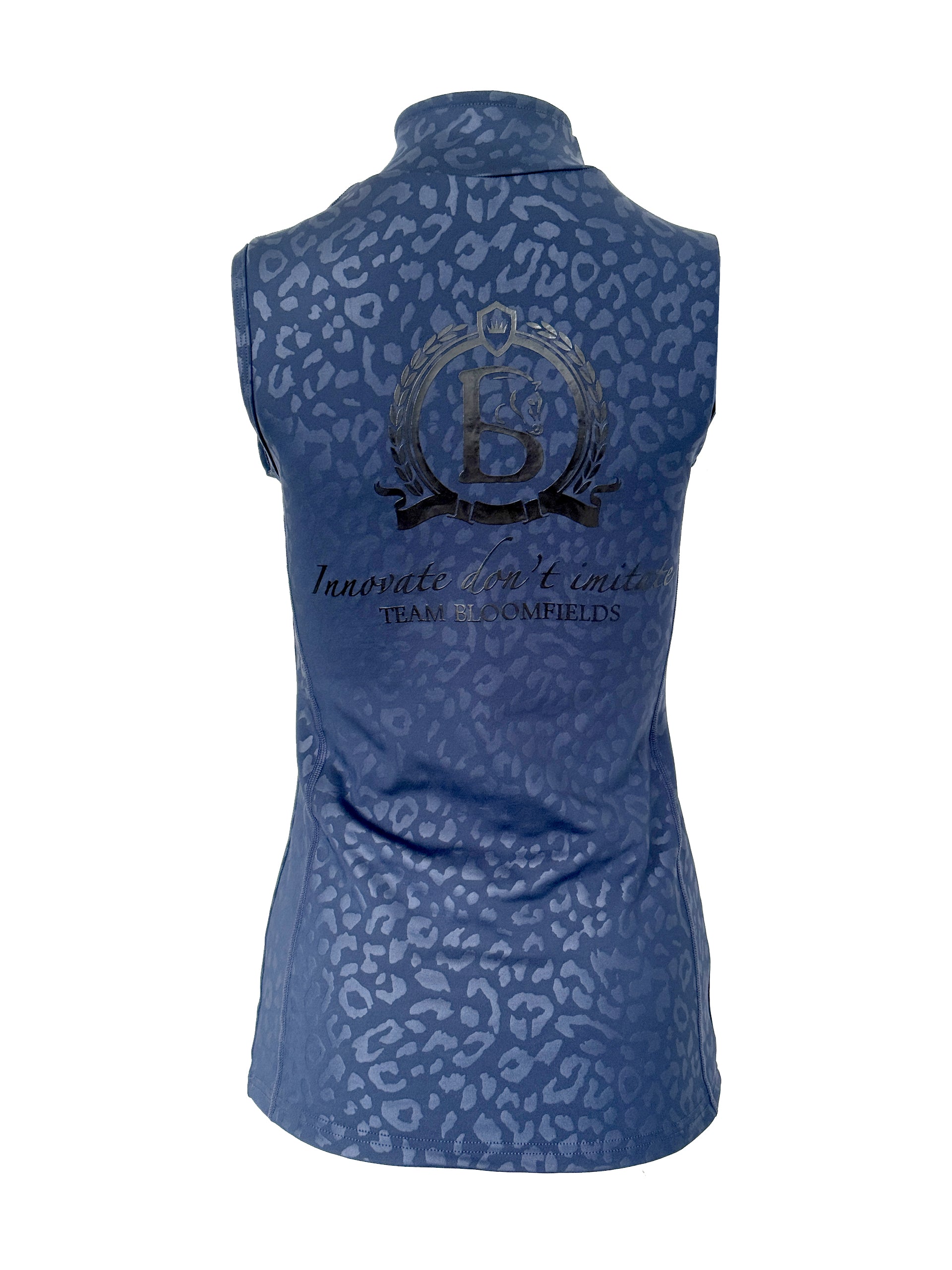 Beautifully fitted navy Young Rider base layer with delicate leopard print pattern
