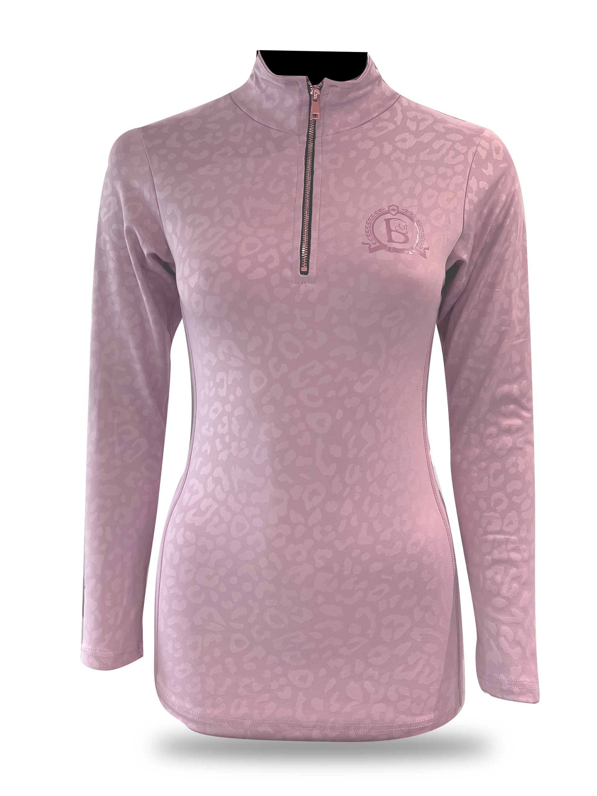 Beautifully fitted pink base layer with delicate leopard print pattern with long sleeves