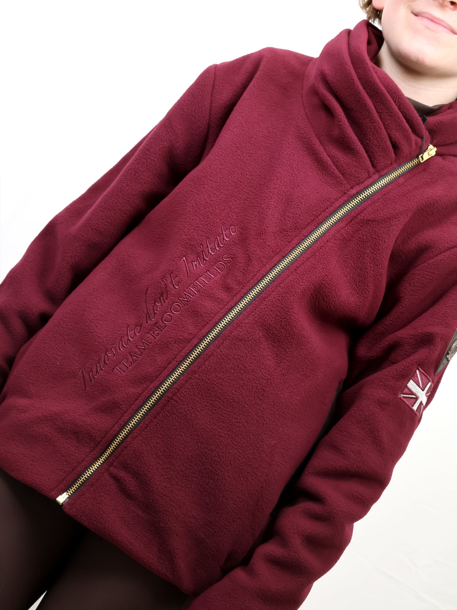 Designed for both style and practicality, this fleece includes subtle Bloomfields branding to the front, two secure zipped pockets, and a rhinestone logo on the back for a touch of luxury sparkle. Finished with premium leather trim and fully lined for added warmth, it’s the perfect blend of comfort, sophistication, and signature Bloomfields detailing.