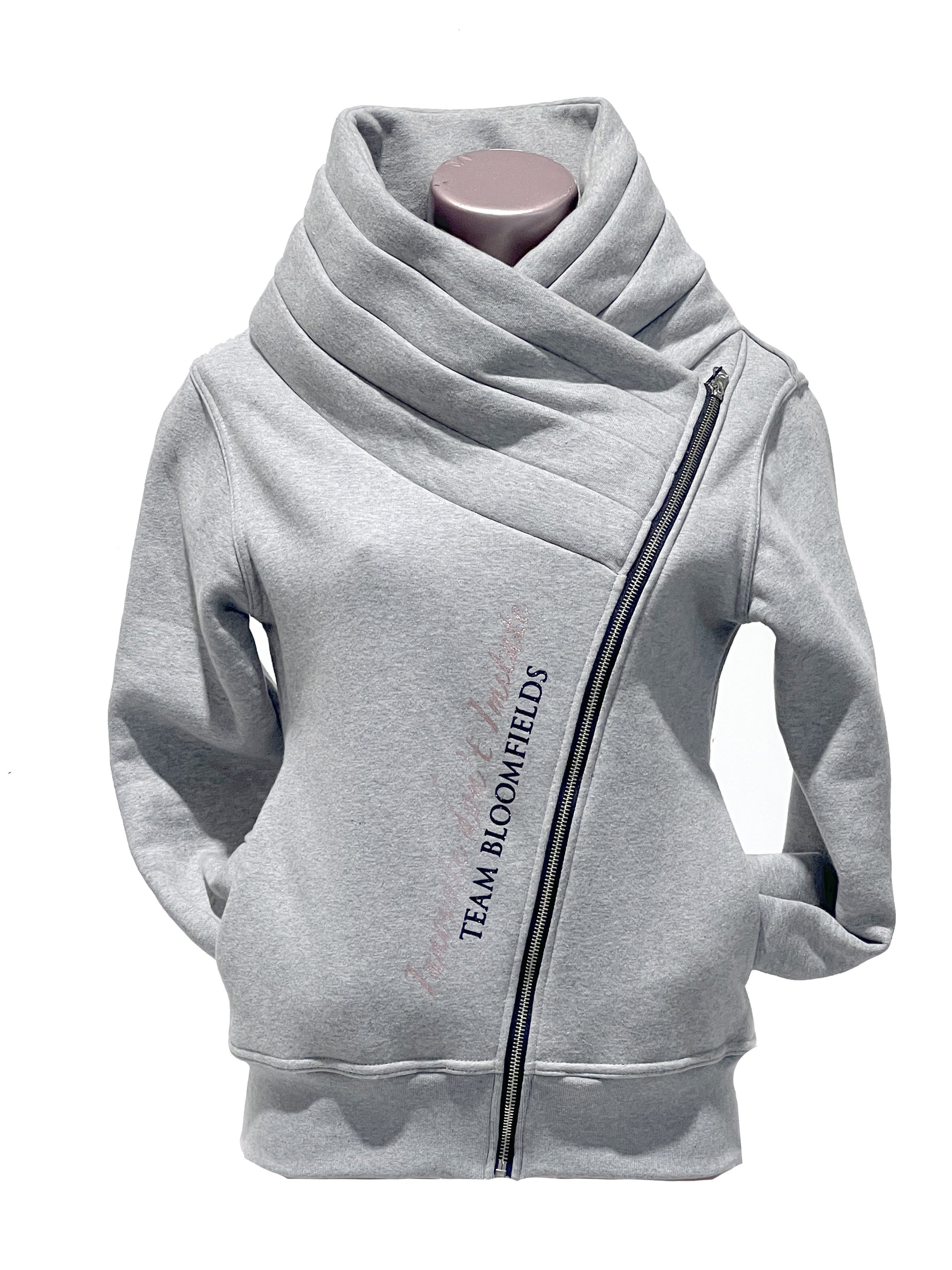 Finished in Marl grey with full zip and exquisite high neck unique design.