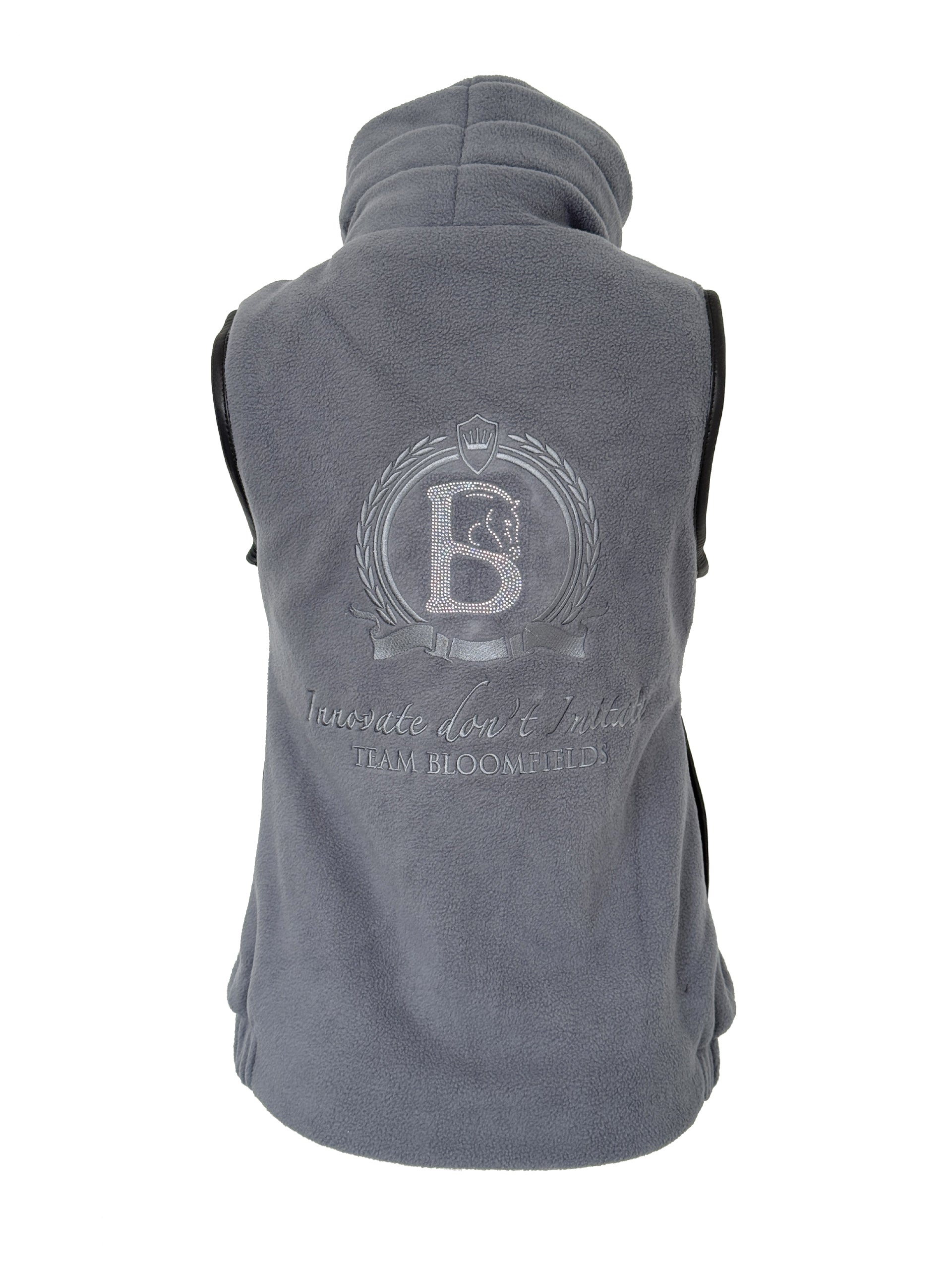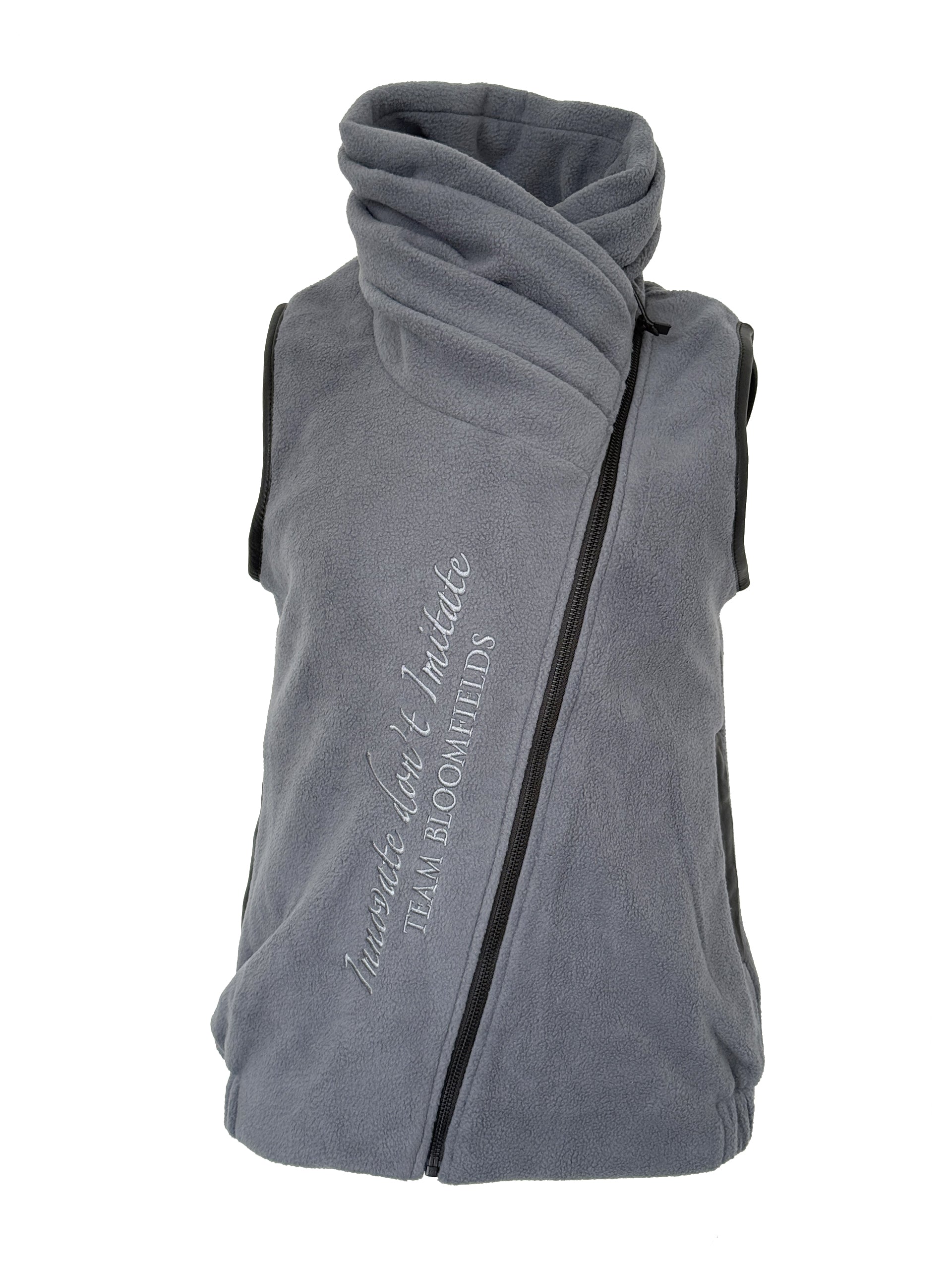 Grey country fleece gilet, with our best selling Sabrina ruffled high neck line