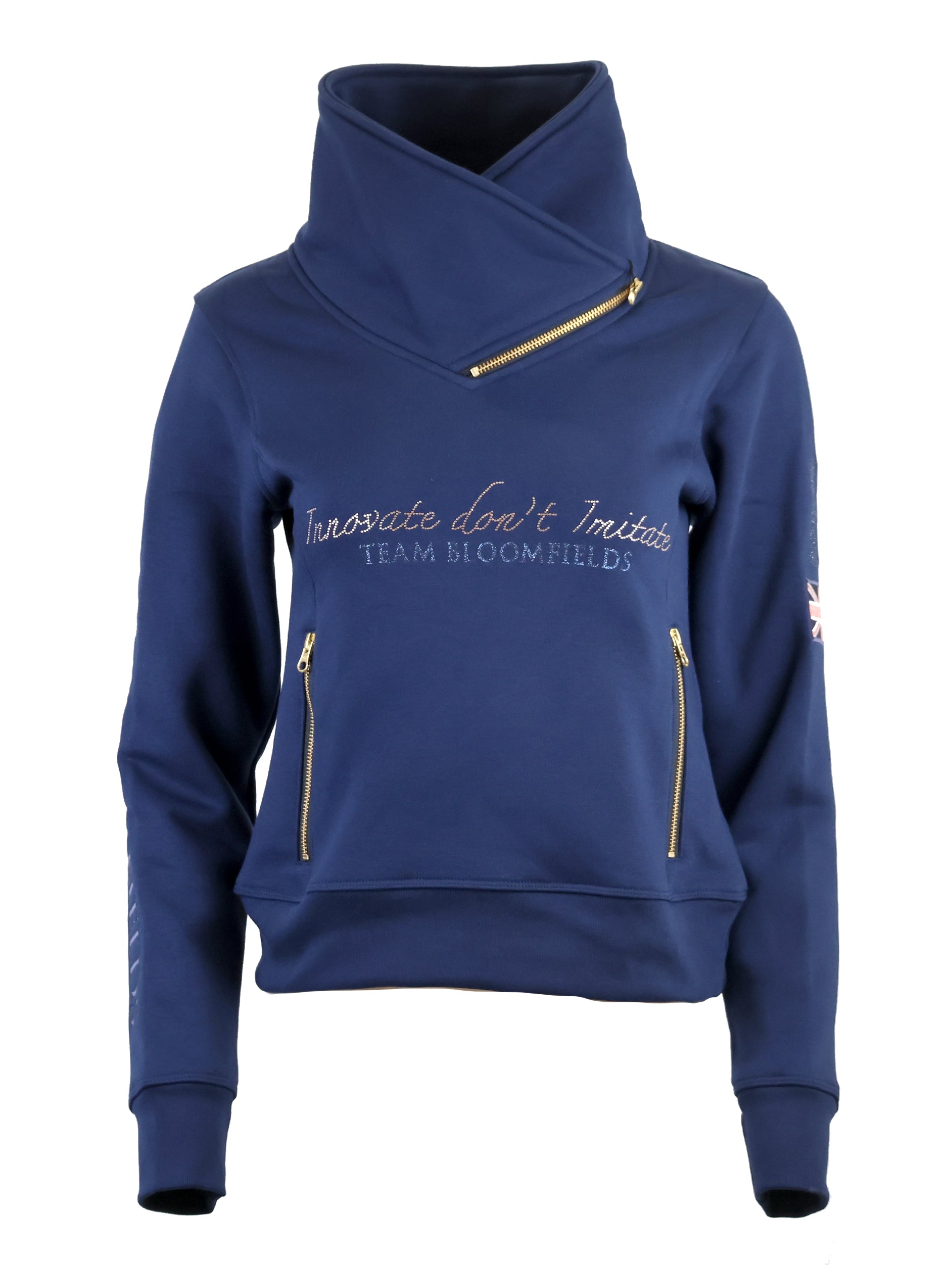 Eleanor in Navy With Rose Gold Rhinestones and Diagonal Quarter Zip Adults Top