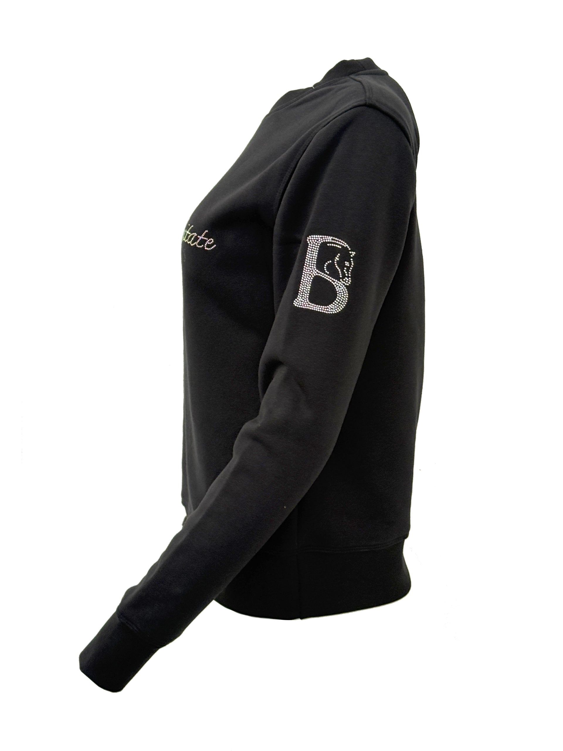 Summer black With black Rhinestones Crew Neck Top with navy glitter branding